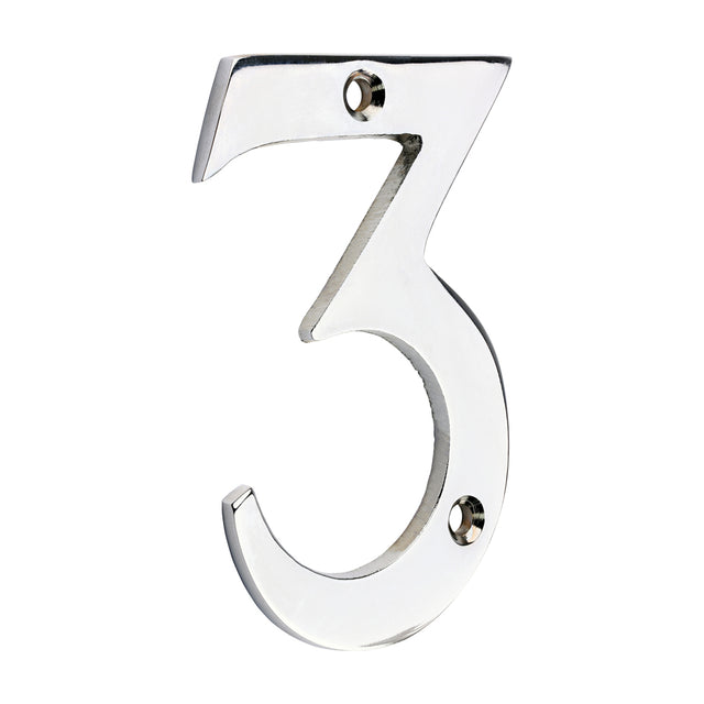 Door Numeral 3 - Polished Chrome - 75mm - Bag of 1