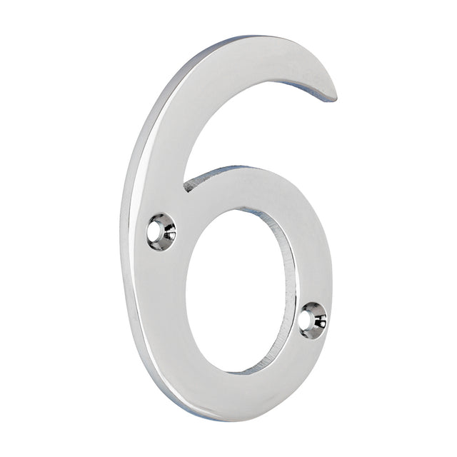 Door Numeral 6 - Polished Chrome - 75mm - Bag of 1