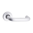 Contractors lever on rose, for use on internal doors in conjunction with a tubular latch. Features a sprung rose so the handle returns to its original position when released.